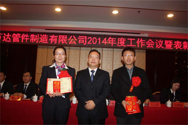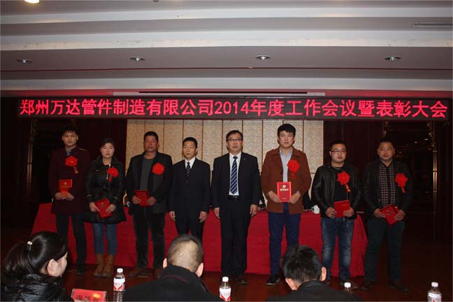 鄭州萬達(dá)管件制造有限公司2014年年會于2015年1月20日隆重召開。會議首先表彰了公司2014年度先進(jìn)工作者、先進(jìn)部門及班組、優(yōu)秀干部、年度進(jìn)步之星、銷售冠軍、優(yōu)秀黨員等十余個(gè)獎(jiǎng)項(xiàng),并對獲獎(jiǎng)?wù)哳C發(fā)了獎(jiǎng)金和證書。公司董事長、黨委書記何清同志在會議上做了題為《適應(yīng)新常態(tài) 開創(chuàng)新局面 實(shí)現(xiàn)公司持續(xù)健康穩(wěn)定發(fā)展 》的報(bào)告,總結(jié)了2014年公司的發(fā)展歷程,取得的成績和不足,展望和部署2015年公司發(fā)展的目標(biāo)和重點(diǎn)工作,為公司全力建設(shè)五位一體的萬達(dá)事業(yè)指明了努力方向。公司全體人員中午舉行了盛大的團(tuán)拜招待會,歡聚一堂,其樂融融。