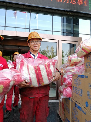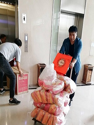 今天下午15:30,在萬(wàn)達(dá)重工行政樓一樓大廳,人力行政中心為全體員工發(fā)放了載滿祝福的中秋禮品:每人一盒七星伴月月餅,祝福著萬(wàn)達(dá)家人闔家團(tuán)圓、幸福美滿;一桶多力葵花籽食用油、一袋大米,希望萬(wàn)達(dá)家人家庭和諧、幸福美滿。以部門為單位進(jìn)行領(lǐng)取,大家有的手提、有的肩扛、有的一起合力抬,萬(wàn)達(dá)人個(gè)個(gè)臉上洋溢著喜悅之情,現(xiàn)場(chǎng)呈現(xiàn)出一片喜氣洋洋、熱鬧非凡的景象。
