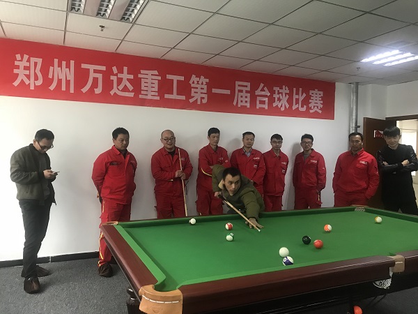 2018年11月15日下午,在綜合行政辦公樓二樓臺(tái)球室舉辦了“鄭州萬達(dá)重工第一屆臺(tái)球比賽”,本次活動(dòng)由公司工會(huì)主辦,公司宣傳部承辦。