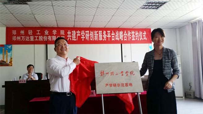 鄭州萬達重工股份有限公司----鄭州輕工業(yè)學院 共建產學研創(chuàng)新服務平臺戰(zhàn)略合作簽約揭牌儀式
