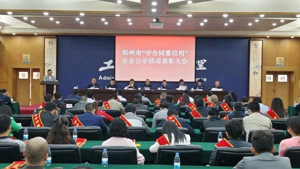 2016/10/17 529 2016年10月14日上午,鄭州市守合同重信用公示活動表彰大會暨第三季度全市工商行政管理工作會議在鄭州市工商行政管理局召開。市工商局領導,各縣(市、區(qū))工商質監(jiān)局、各直屬分局主要負責同志及鄭州市守合同重信用企業(yè)代表200余人參加會議,會議上對全市28家2014-2015年度國家級守合同重信用企業(yè)和175家2014-20...